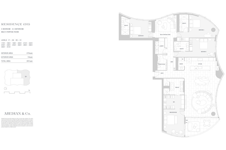 Internal area: 278 m²; external area: 19 m²; total area: 297 m².