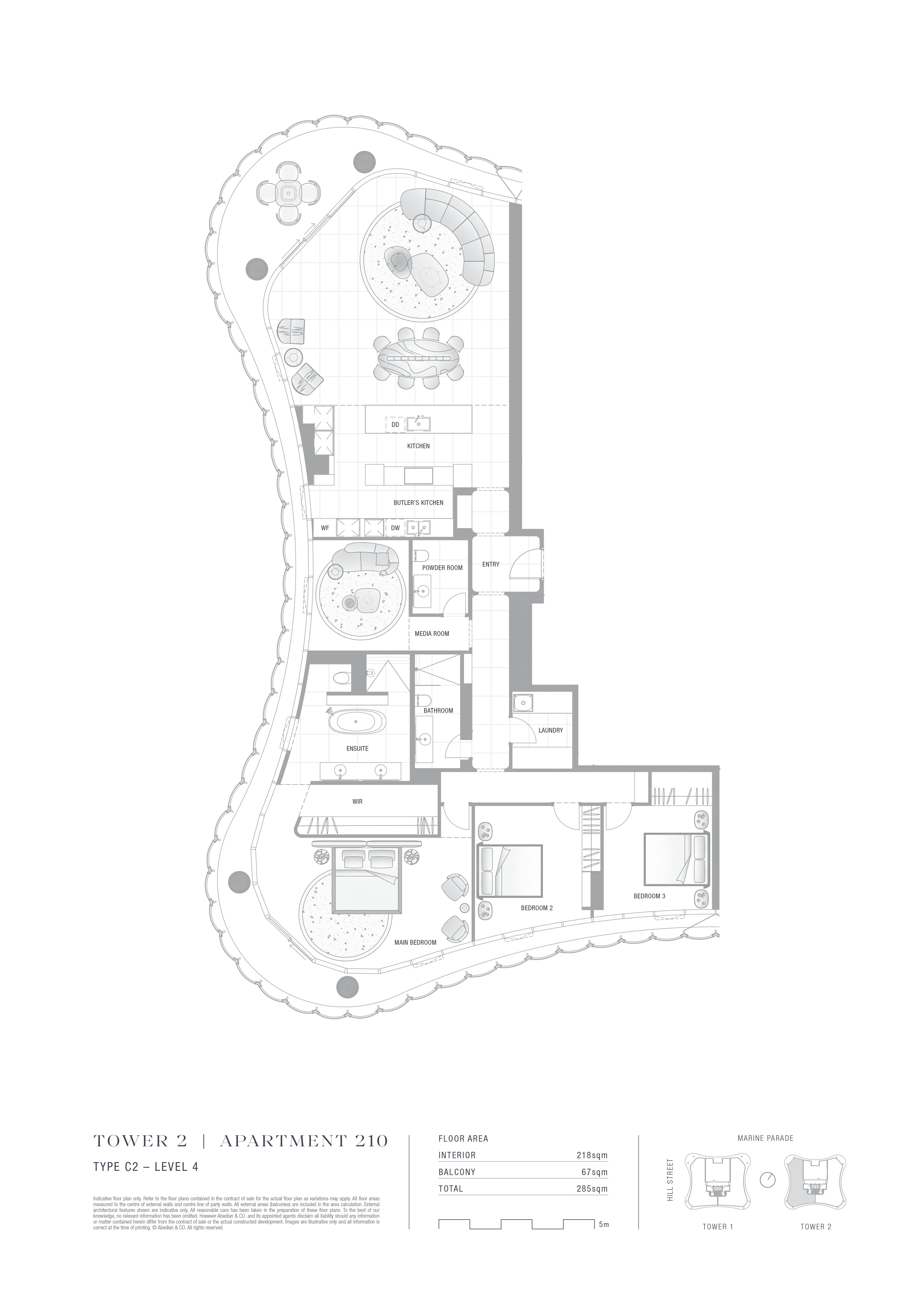 Internal area: 218 m²; external area: 67 m²; total area: 285 m².