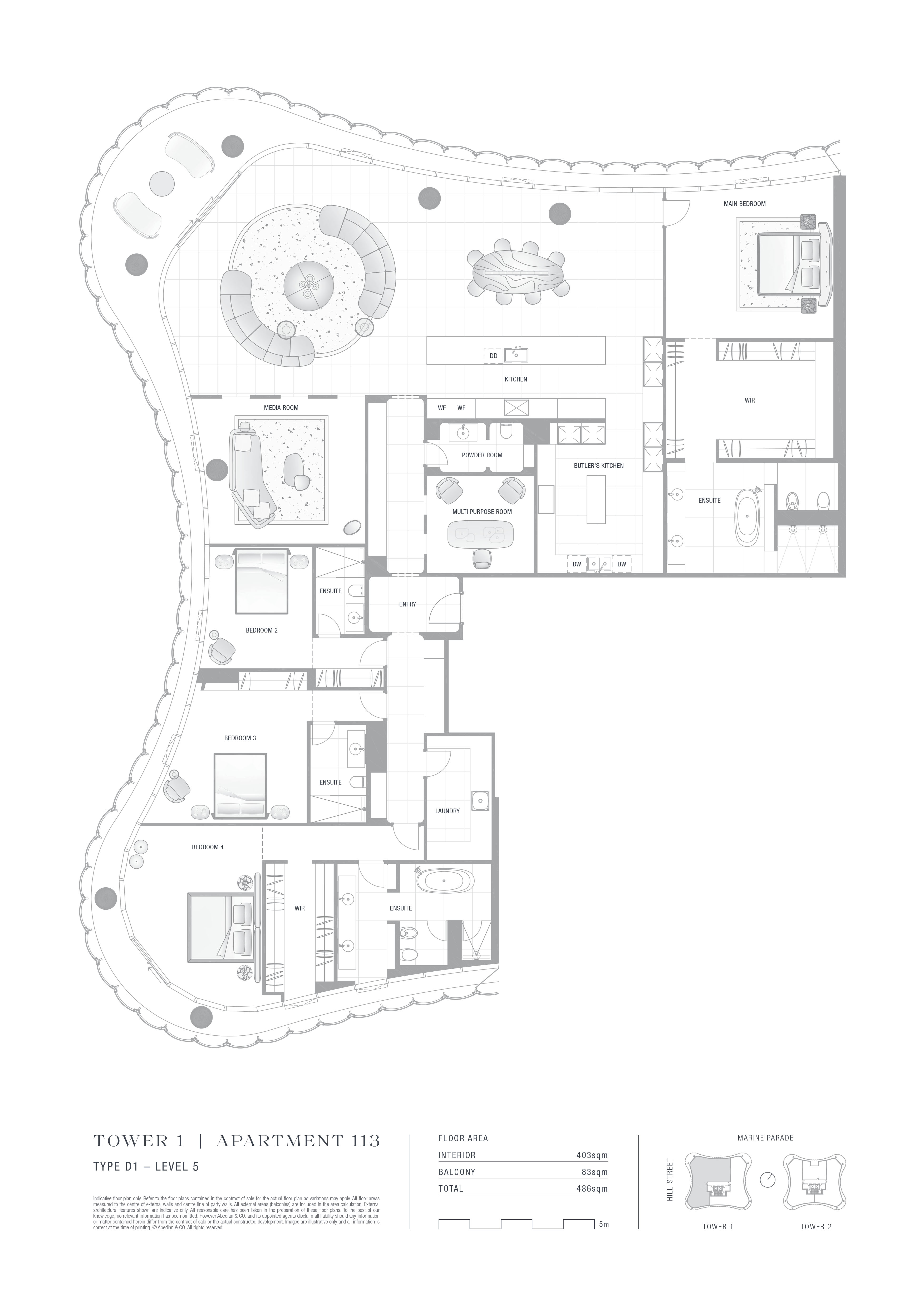 Surface intérieure : 403 m² - Surface extérieure : 83 m² - Surface totale : 486 m².